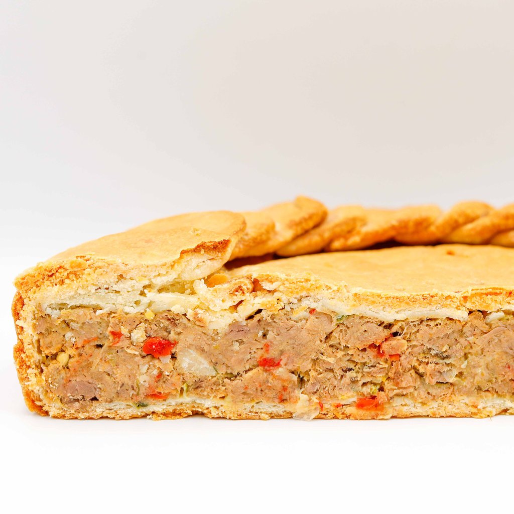 Куряче філе, білий гриб, польські гриби, печериці, цибуля порей, сир плавлений, аджика, соус ворчестер, аджика гостра, соєвий соус, вершки, яйця, оцет яблучний, цукор, крохмаль, вода, спеції, тісто пісочнеВага: 1 кгСтрок реалізації: 5 діб